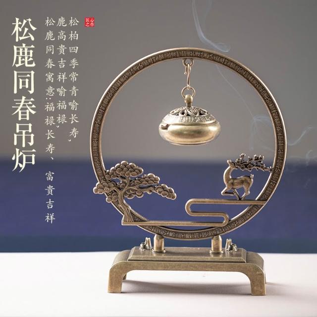 桃甜也居家生活 迎客松香爐擺飾家用室內懸吊吊爐薰香爐中式復古沉香檀香爐
