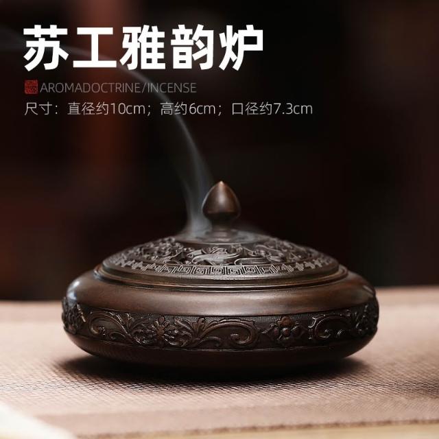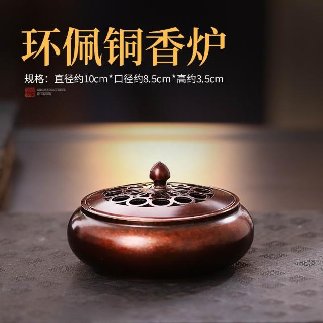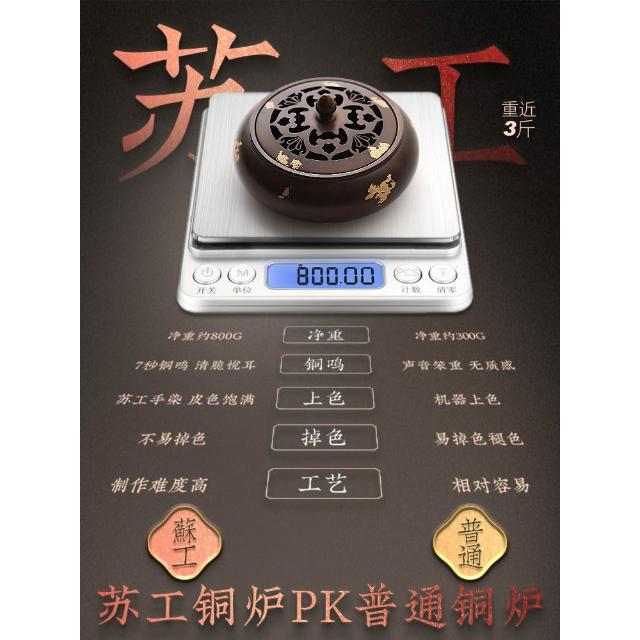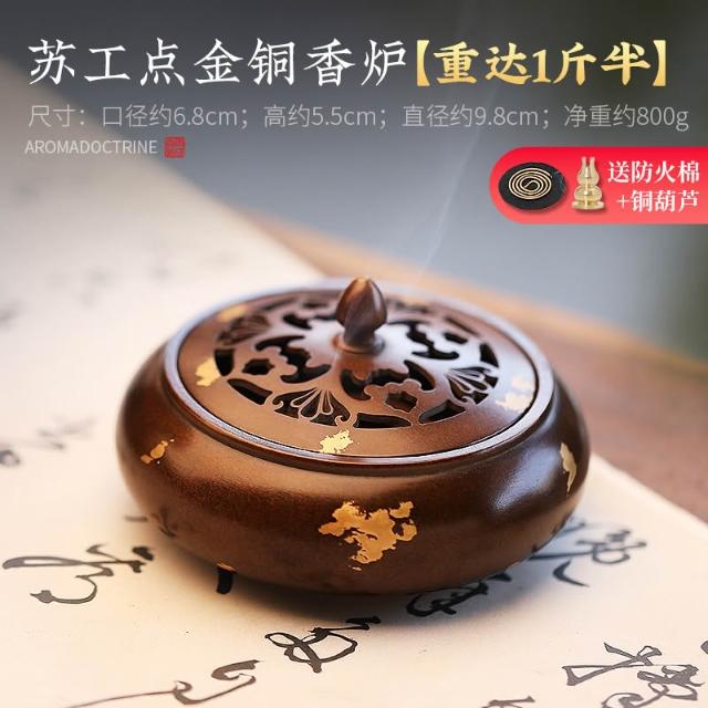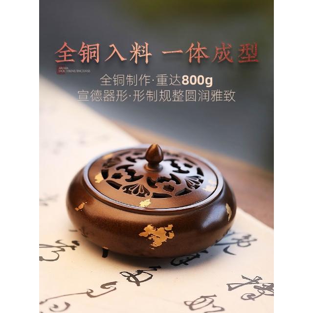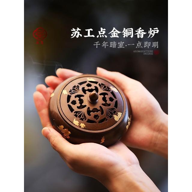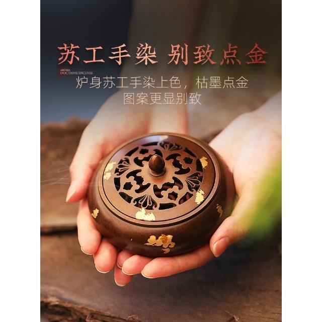 桃甜也居家生活 蘇工純銅香爐家用室內薰香爐沉香香薰爐高級紫銅色茶道盤香宣德爐