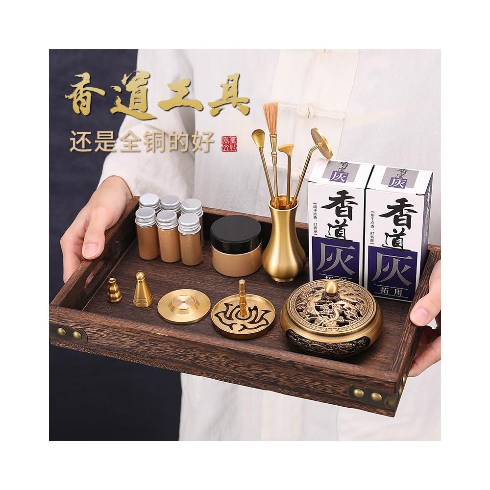 桃甜也居家生活 香篆套裝黃銅香道檀香製香工具香薰爐入門級香粉打篆灰壓用品香爐