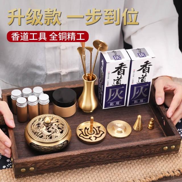 桃甜也居家生活 香篆套裝黃銅香道檀香製香工具香薰爐入門級香粉打篆灰壓用品香爐