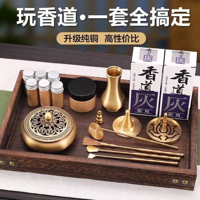 桃甜也居家生活 香篆套裝黃銅香道檀香製香工具香薰爐入門級香粉打篆灰壓用品香爐