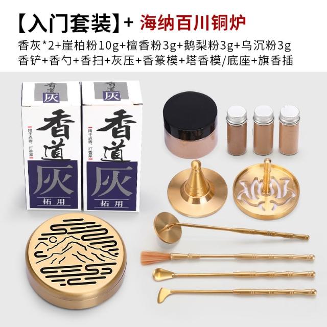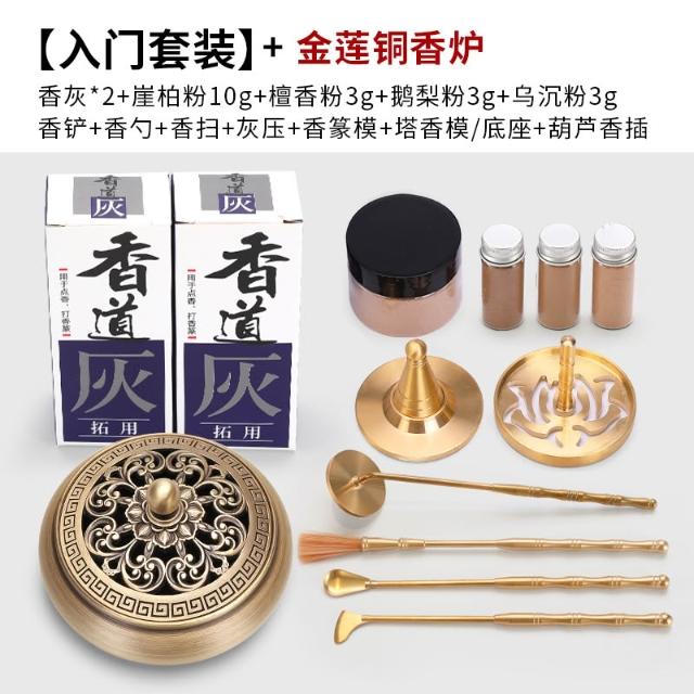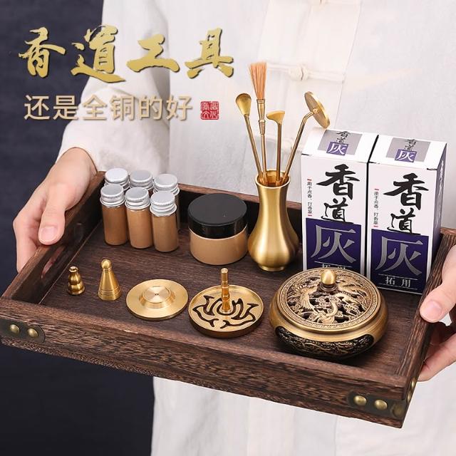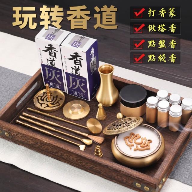 桃甜也居家生活 香篆套裝黃銅香道檀香製香工具香薰爐入門級香粉打篆灰壓用品香爐