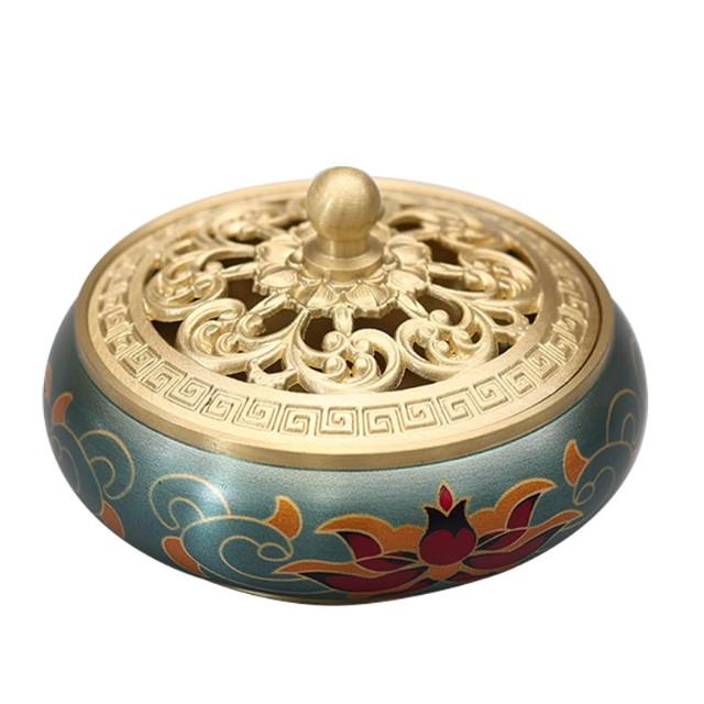 桃甜也居家生活 印彩蓮花銅香爐家用沉香艾草盤香薰爐室內香篆爐擺件茶道焚香爐