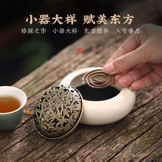 桃甜也居家生活 國風陶瓷香氛爐家用盤香室內打香篆爐沉香檀香熏香爐茶道焚香器