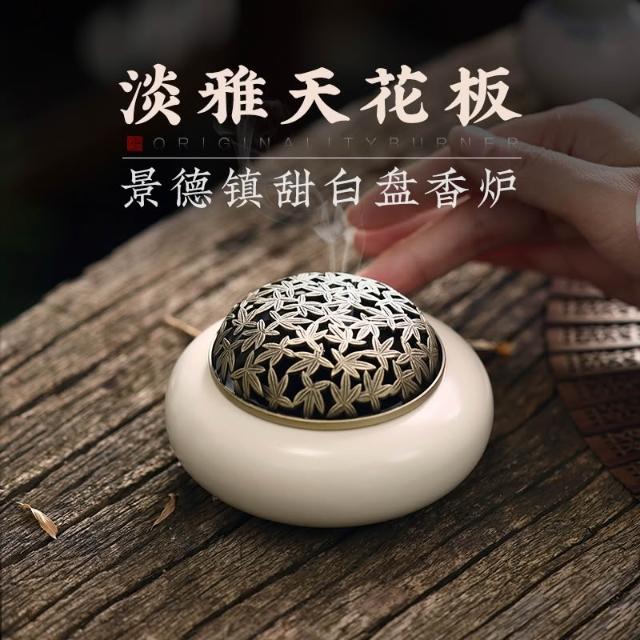 桃甜也居家生活 國風陶瓷香氛爐家用盤香室內打香篆爐沉香檀香熏香爐茶道焚香器