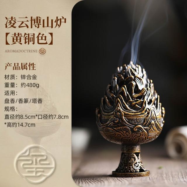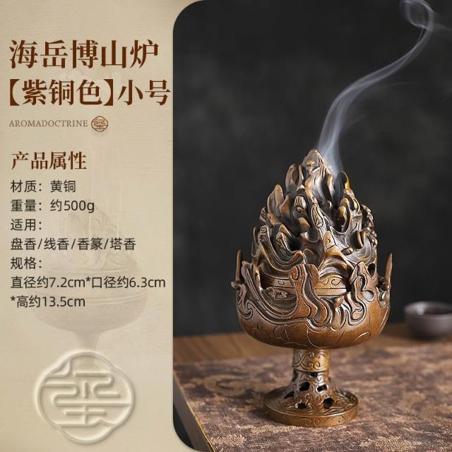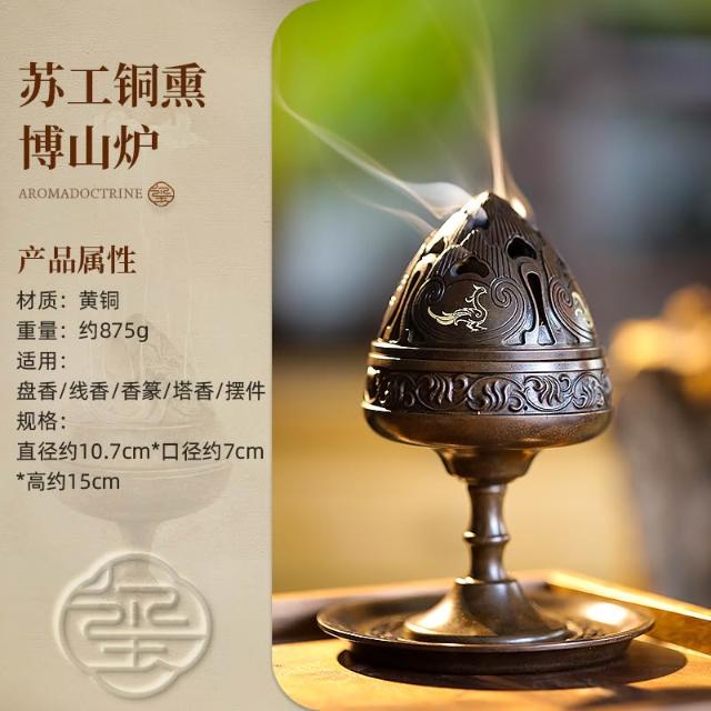 桃甜也居家生活 中式銅博山爐香爐家用室內薰香爐香篆盤香薰爐沈香檀香博山燻爐