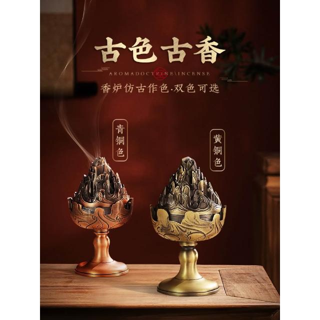 桃甜也居家生活 中式銅博山爐香爐家用室內薰香爐香篆盤香薰爐沈香檀香博山燻爐