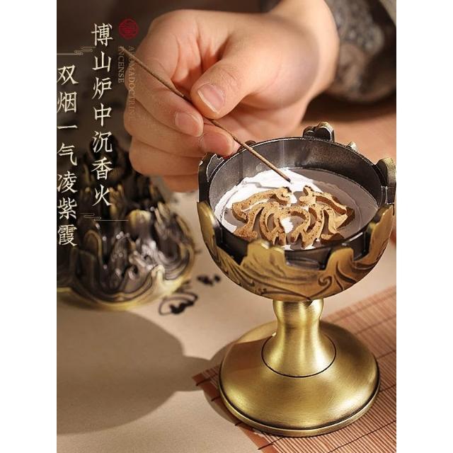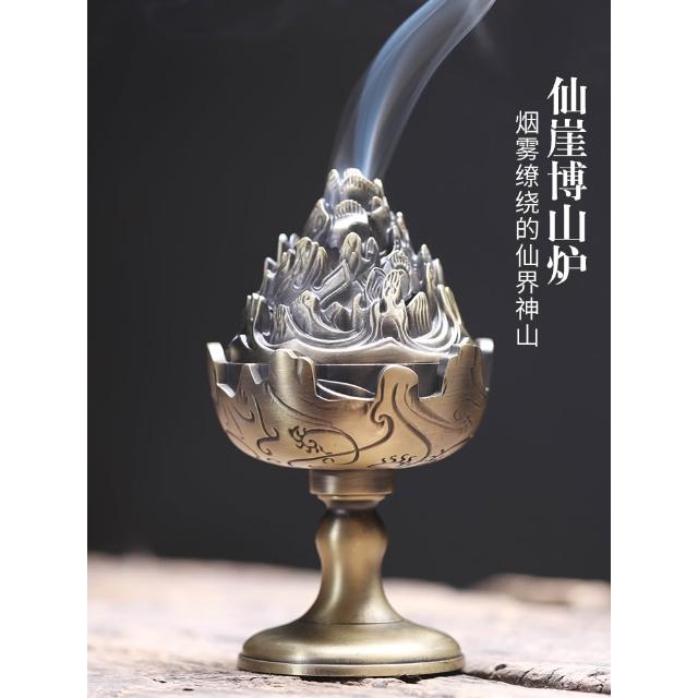 桃甜也居家生活 中式銅博山爐香爐家用室內薰香爐香篆盤香薰爐沈香檀香博山燻爐