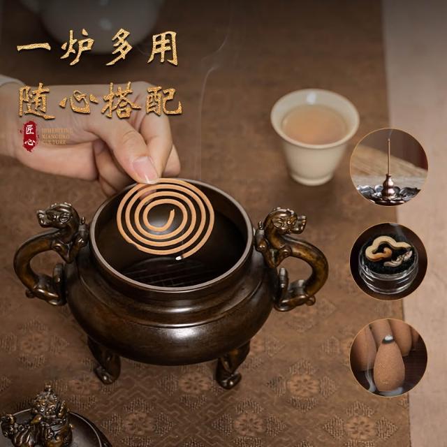 桃甜也居家生活 蘇工做舊銅香爐復古三足香薰爐檀香熏香沉香香篆爐玄關貔貅銅擺件
