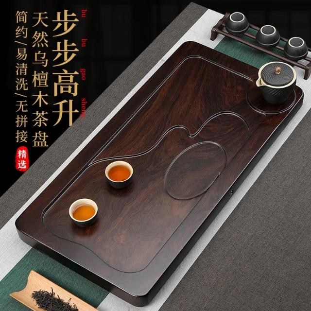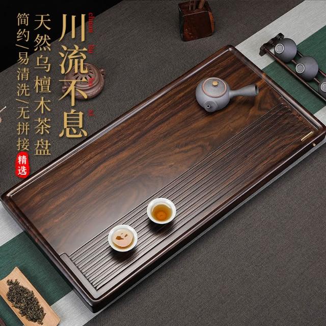 桃甜也居家生活 整塊烏檀木茶盤實木茶台 家用現代簡約原木黑檀木茶海花梨木茶具