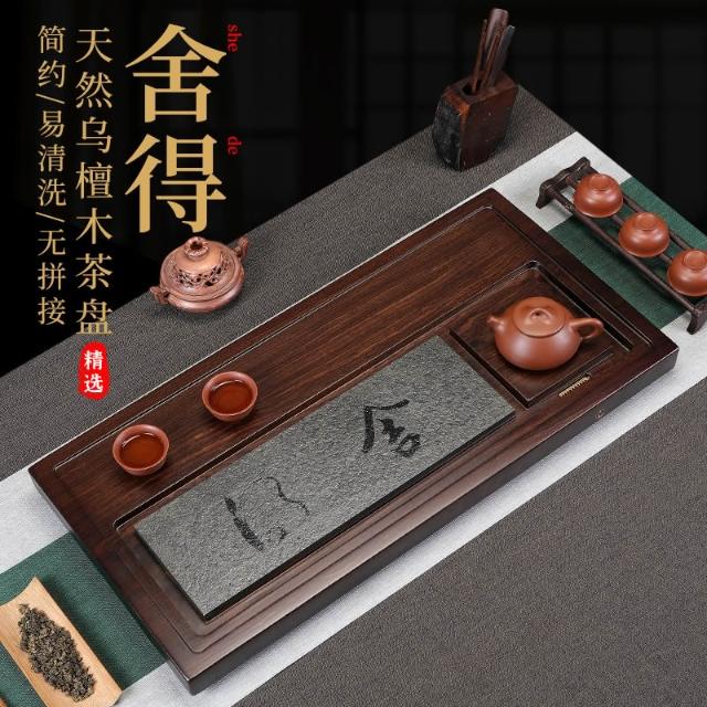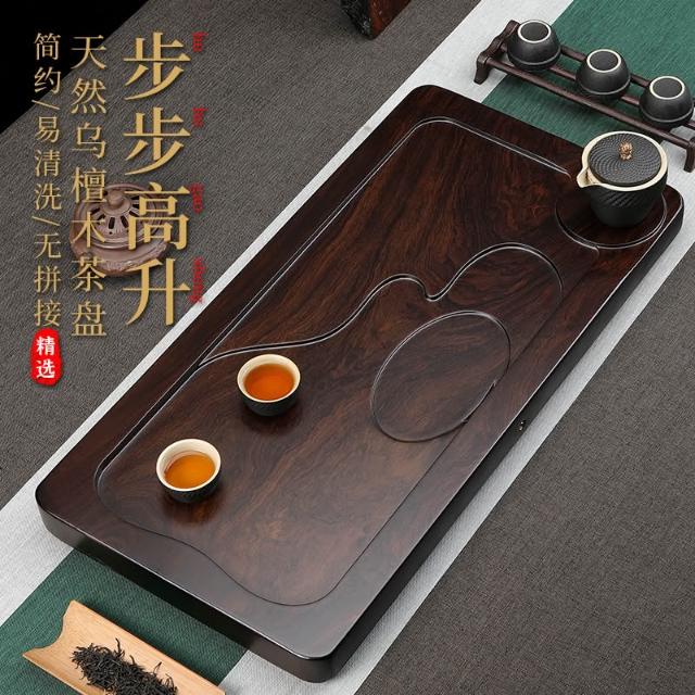 桃甜也居家生活 整塊烏檀木茶盤實木茶台 家用現代簡約原木黑檀木茶海花梨木茶具