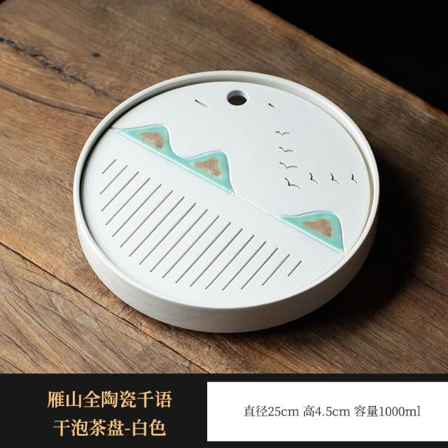 桃甜也居家生活 陶瓷茶盤家用茶托盤茶具小型乾泡台客廳茶海茶几茶杯茶水功夫茶台
