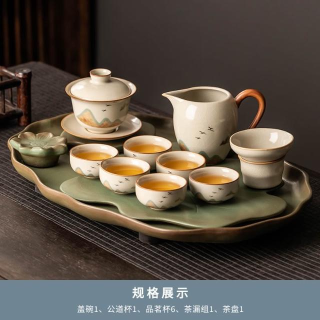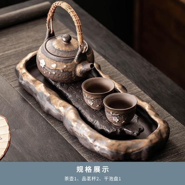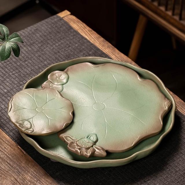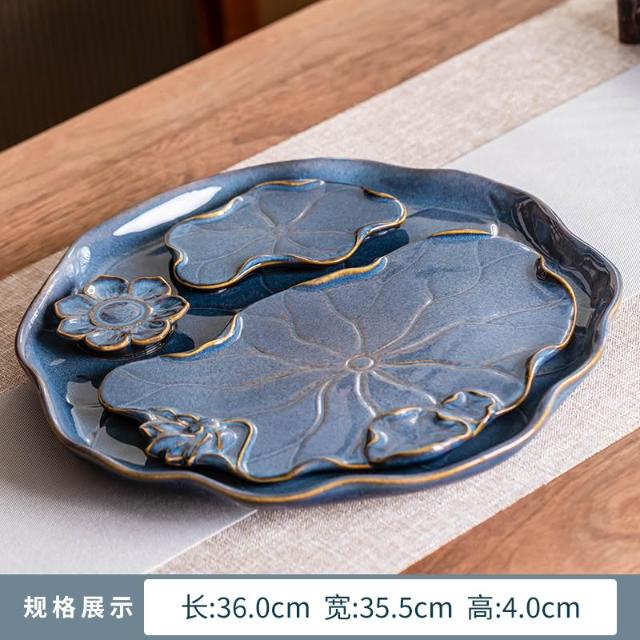 桃甜也居家生活 陶瓷茶盤新中式小型家用泡茶杯托盤辦公室排水輕奢高端功夫茶檯盤