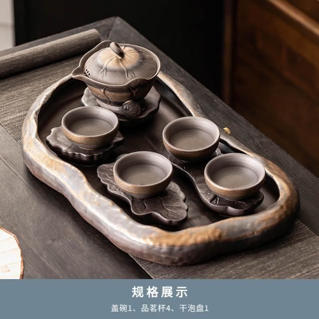 桃甜也居家生活 陶瓷茶盤新中式小型家用泡茶杯托盤辦公室排水輕奢高端功夫茶檯盤