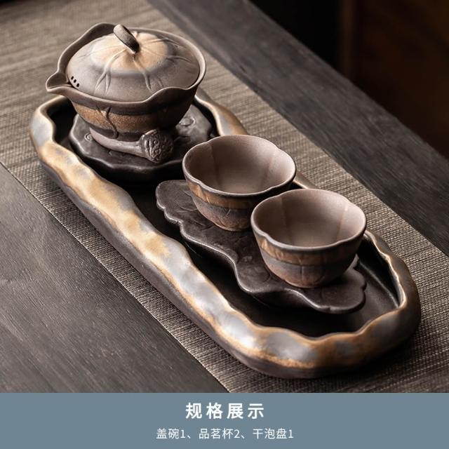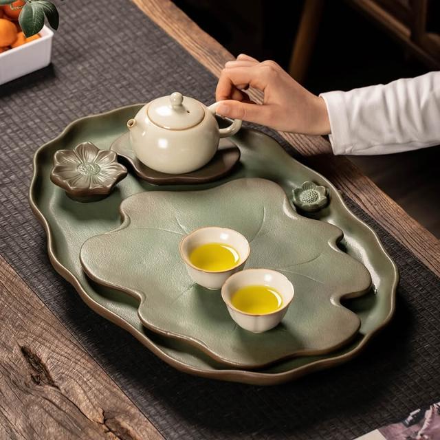 桃甜也居家生活 陶瓷茶盤新中式小型家用泡茶杯托盤辦公室排水輕奢高端功夫茶檯盤