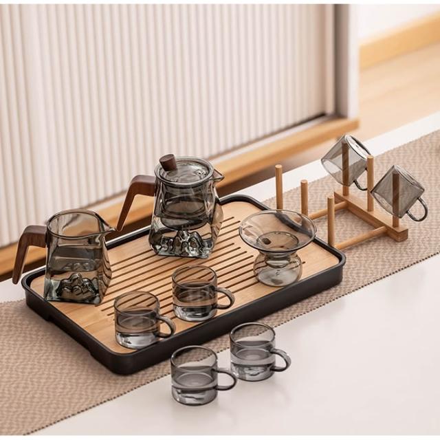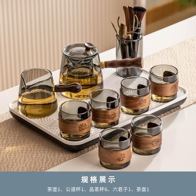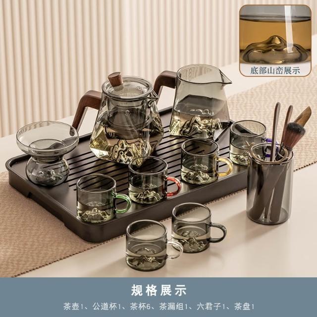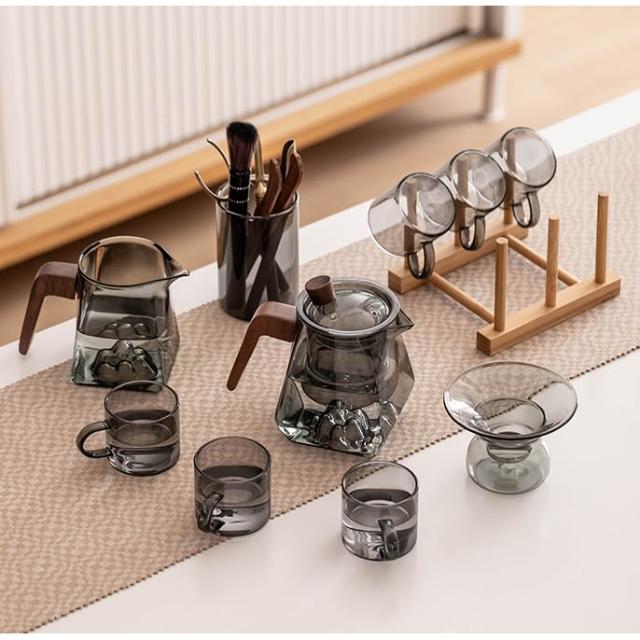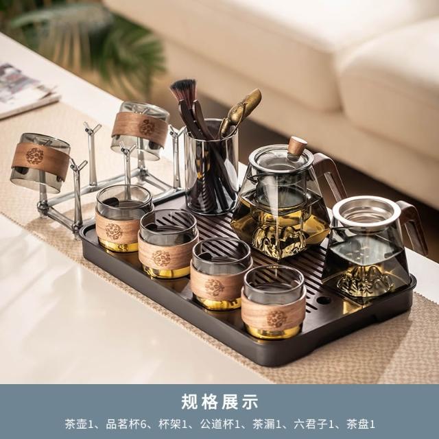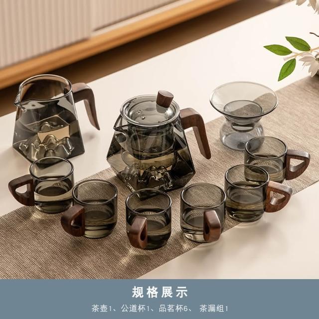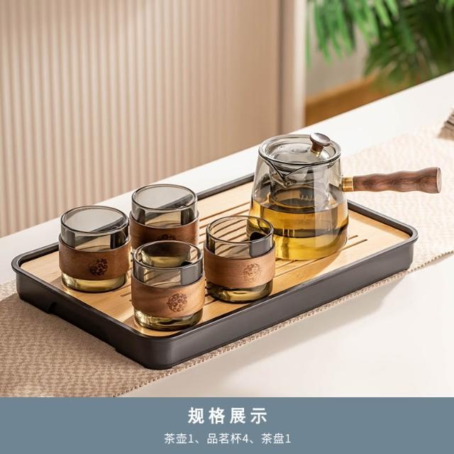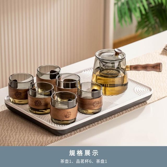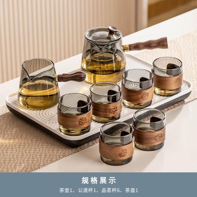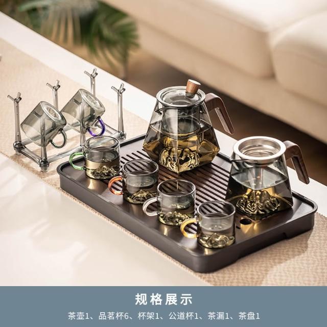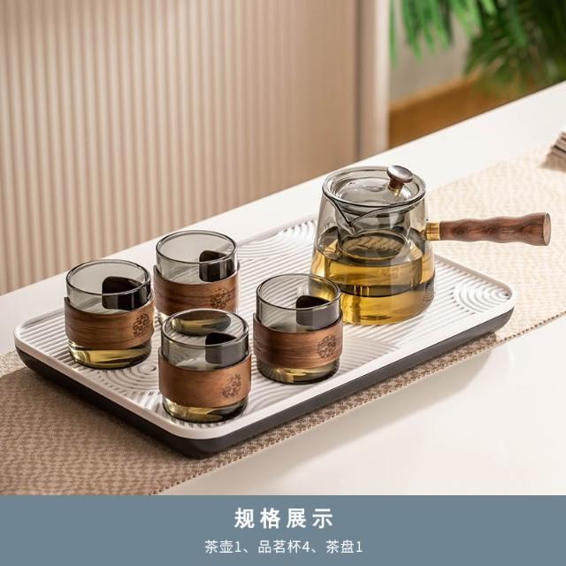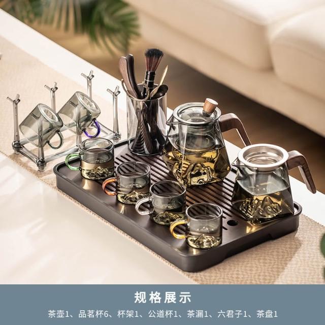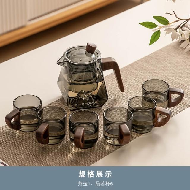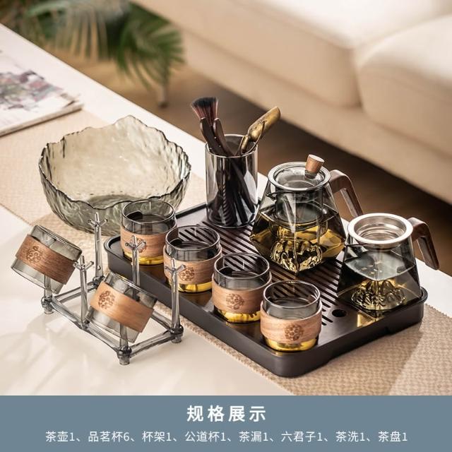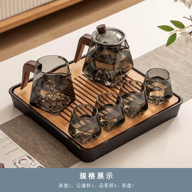 桃甜也居家生活 玻璃茶具組家用客廳泡茶壺茶盤辦公室會客喝茶防燙茶杯