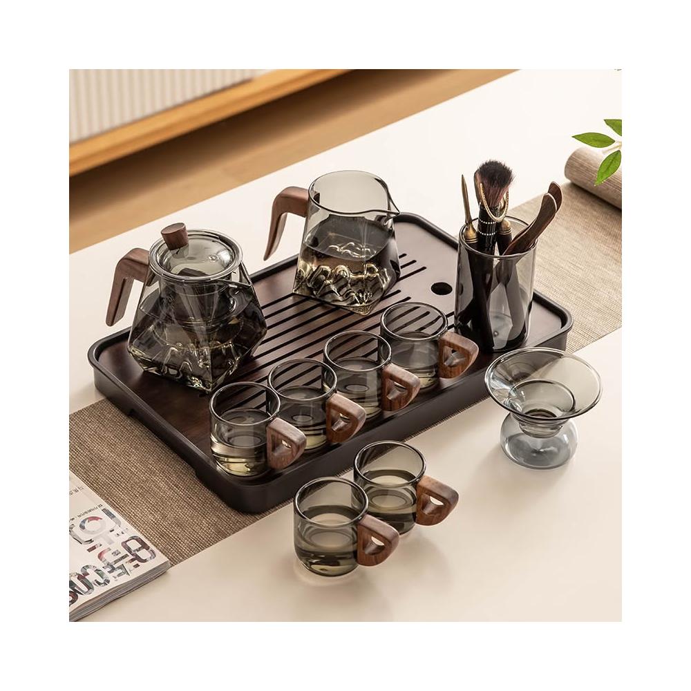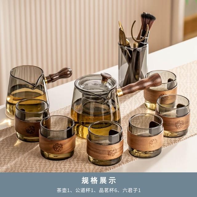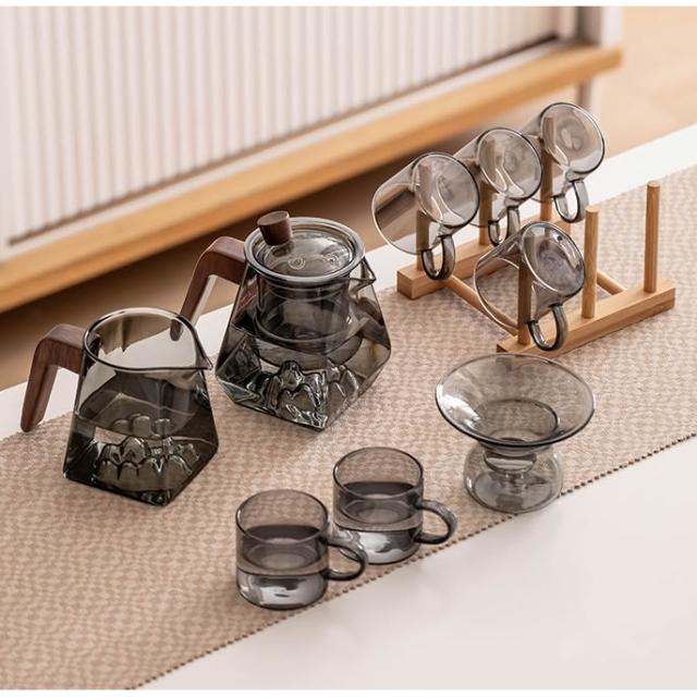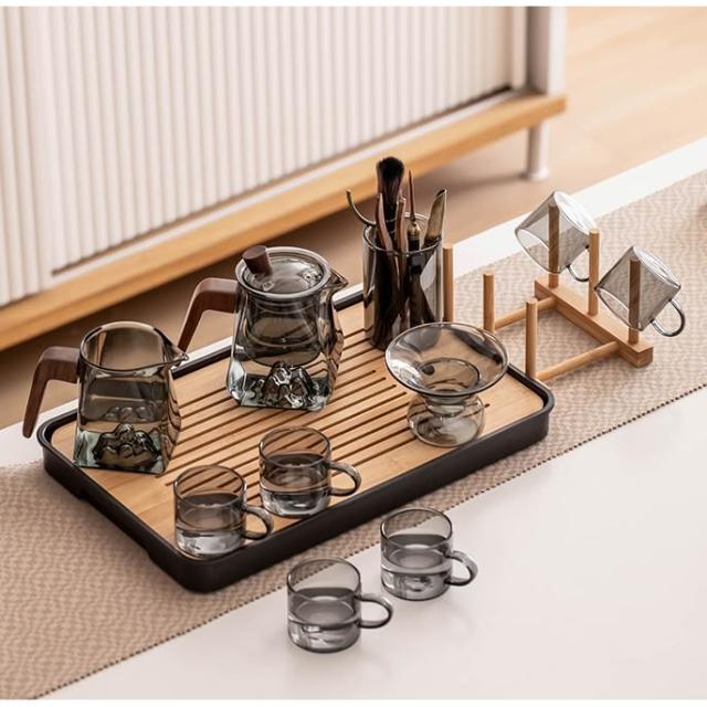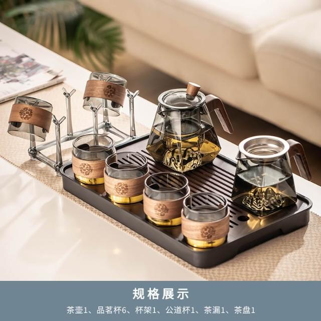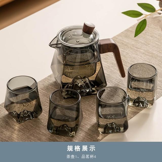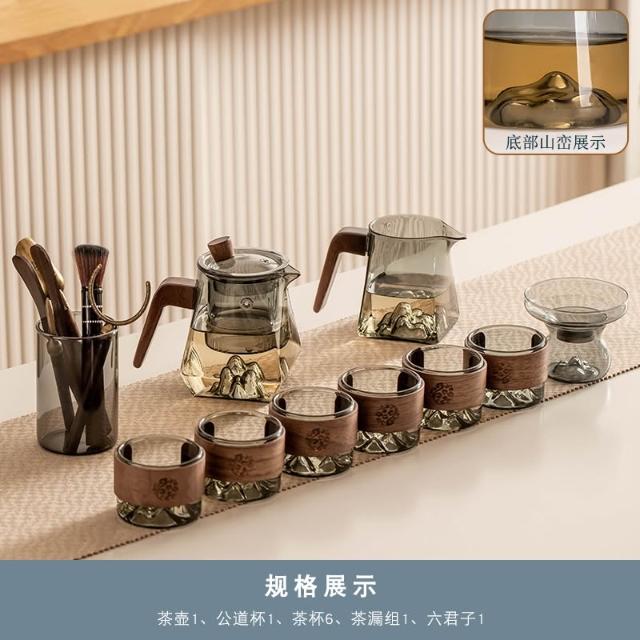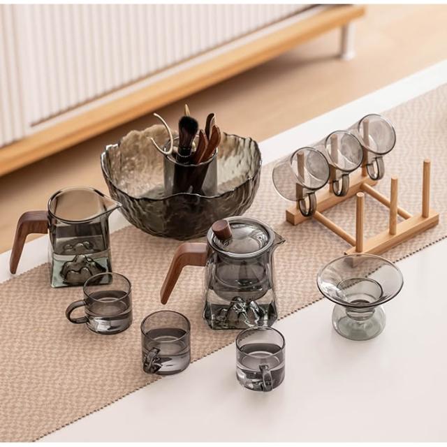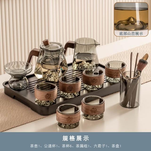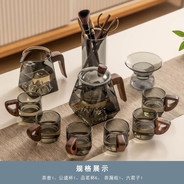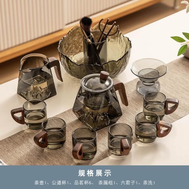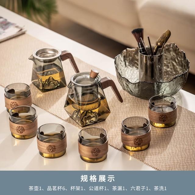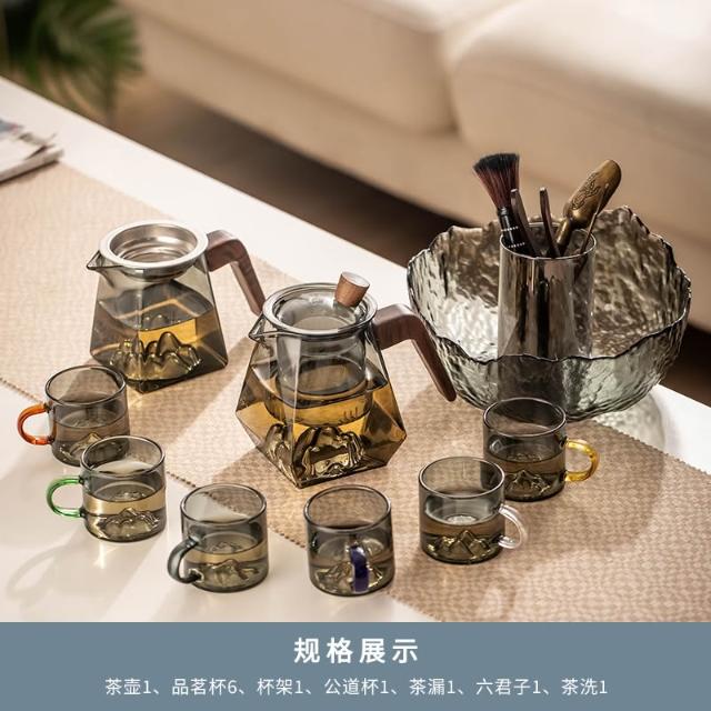 桃甜也居家生活 玻璃茶具組家用客廳泡茶壺茶盤辦公室會客喝茶防燙茶杯