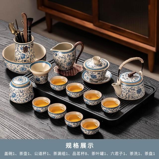 桃甜也居家生活 汝窯茶具組整套家用新陶瓷茶壺茶杯茶盤辦公會客喝茶中式