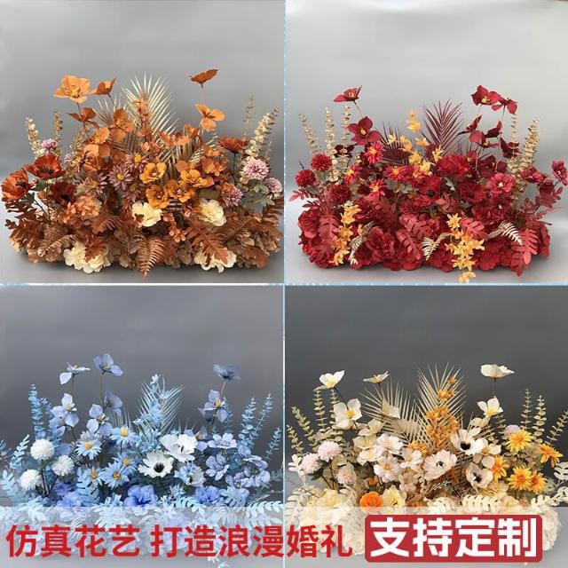 桃甜也居家生活 婚禮花排地排花t台裝飾路引花婚禮舞台現場佈置假花背景模擬花藝