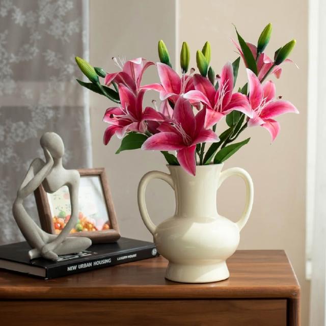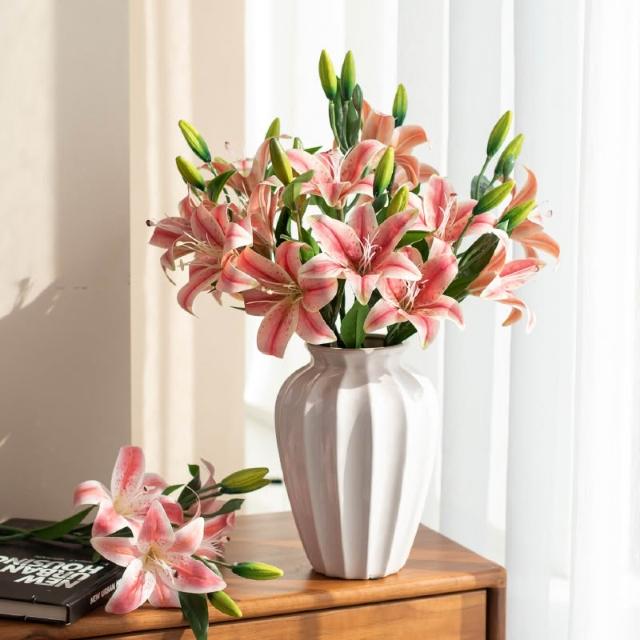 桃甜也居家生活 高級百合花仿真花裝飾擺飾客廳花束假花擺設手感保濕花水洗PU膠花