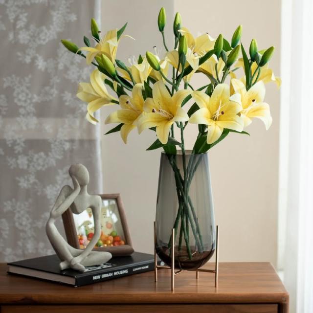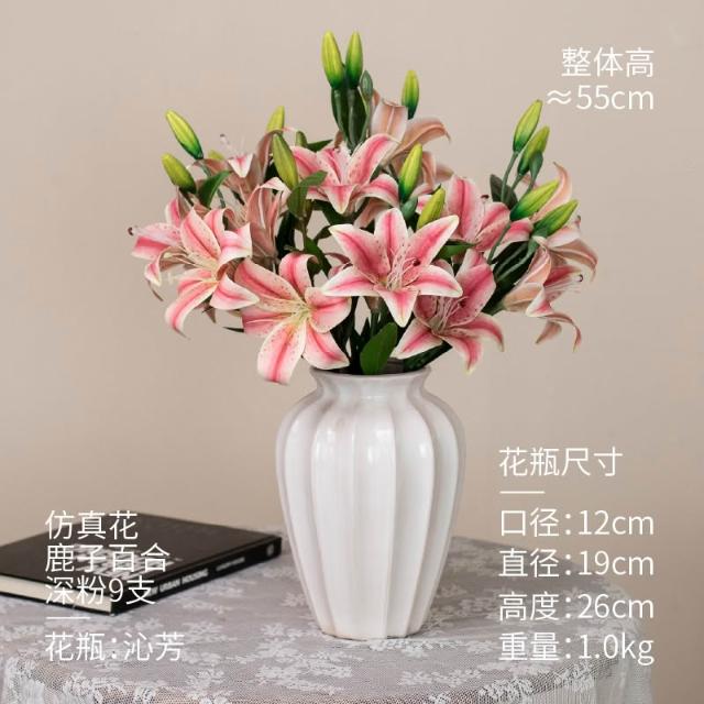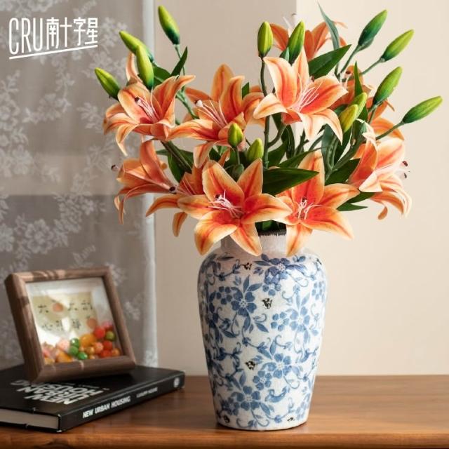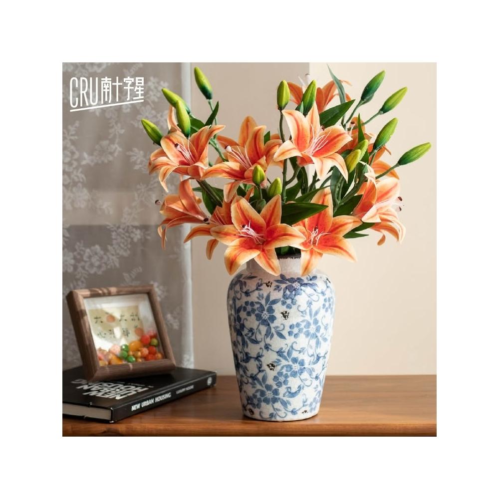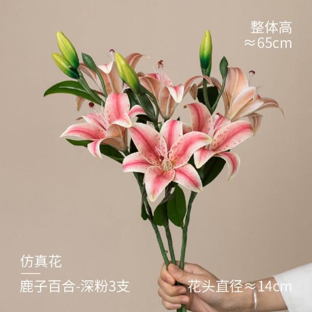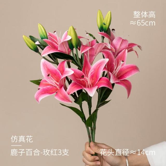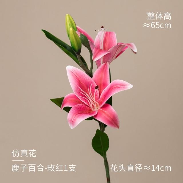 桃甜也居家生活 高級百合花仿真花裝飾擺飾客廳花束假花擺設手感保濕花水洗PU膠花