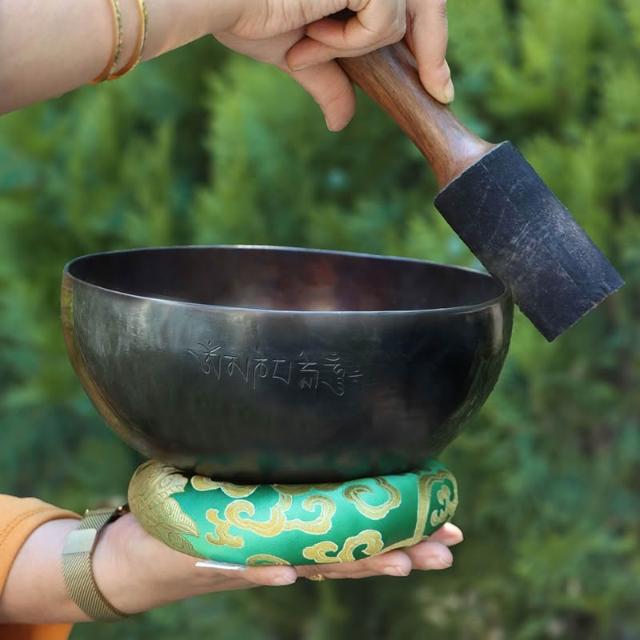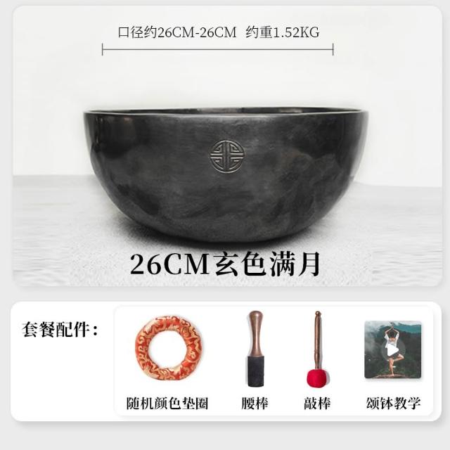 桃甜也居家生活 玄色滿月頌缽銅碗尼泊爾手工梵音缽銅磬擺件音療冥想缽