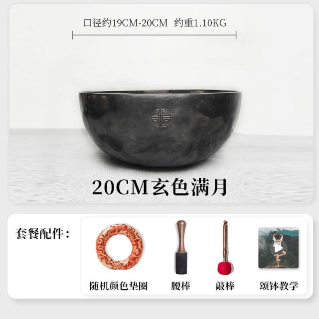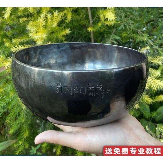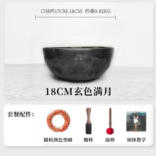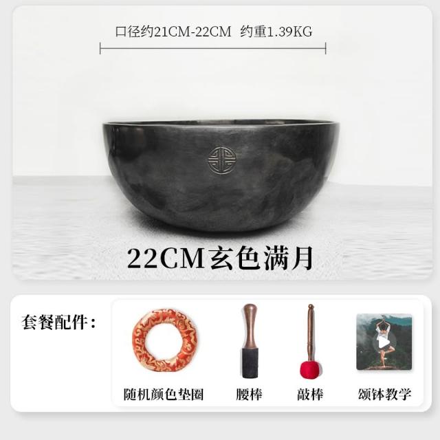 桃甜也居家生活 玄色滿月頌缽銅碗尼泊爾手工梵音缽銅磬擺件音療冥想缽