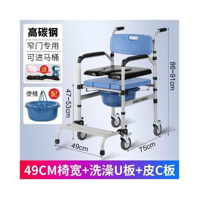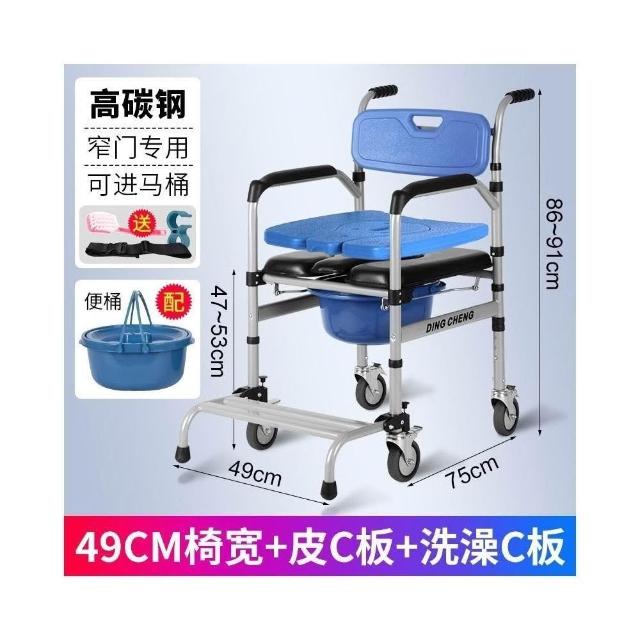 行動馬桶 移動馬桶 50CM窄門專用癱瘓老人洗澡輪椅坐便器移動馬桶洗澡椅子老人沐浴椅