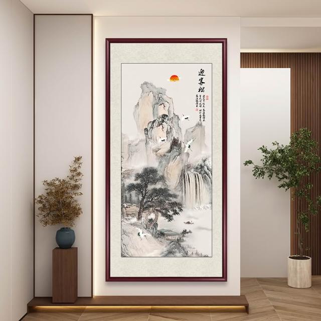 掛畫 裝飾畫 迎客松國畫新中式入戶玄關裝飾畫中堂畫客廳掛畫牆面畫走廊山水畫