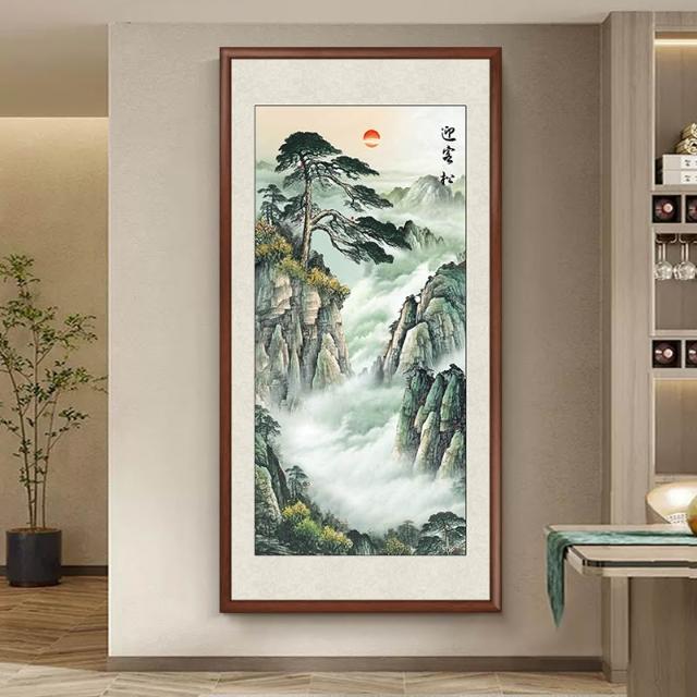掛畫 裝飾畫 迎客松國畫新中式入戶玄關裝飾畫中堂畫客廳掛畫牆面畫走廊山水畫