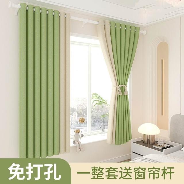 桃甜也居家生活 遮光窗簾免打孔安裝羅馬桿一整套2024新臥室遮陽飄窗全佈出租房