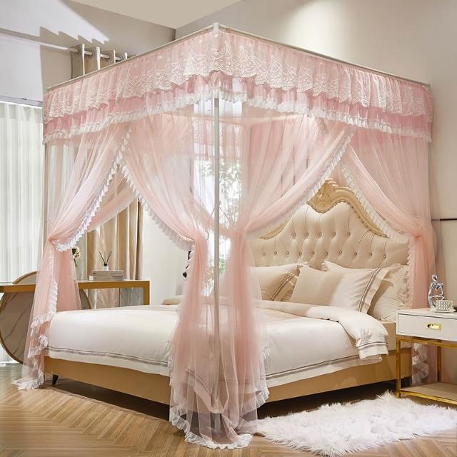 桃甜也居家生活 全新落地蚊帳1.8m床家用臥室宮廷公主風紋帳夏季睡帳加厚加密支架