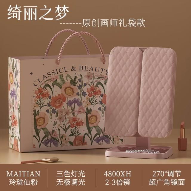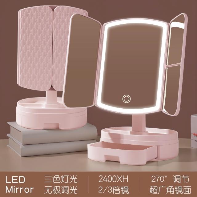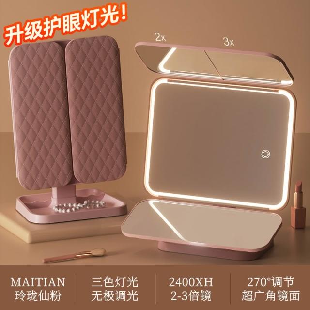桃甜也精選好物 鏡子化妝鏡led帶燈桌面台式可立折疊家用學生宿舍放大梳妝美妝鏡