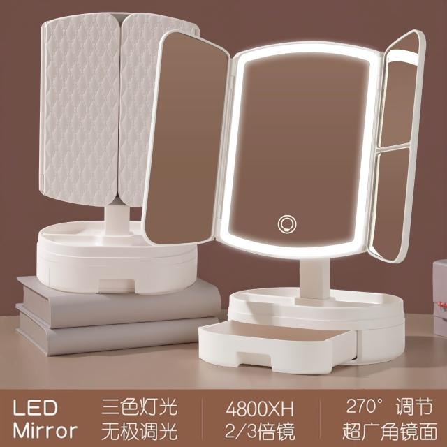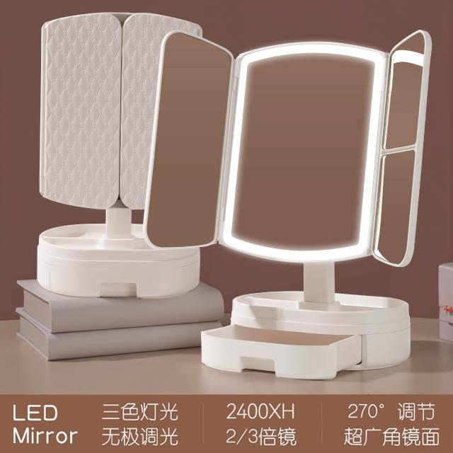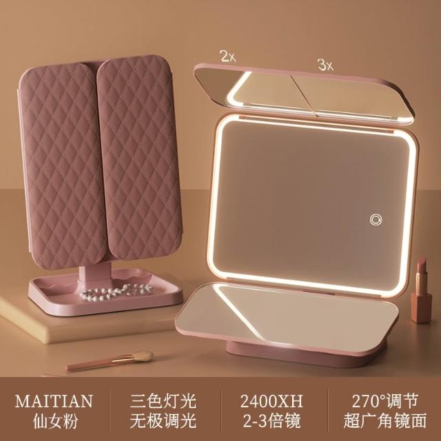 桃甜也精選好物 鏡子化妝鏡led帶燈桌面台式可立折疊家用學生宿舍放大梳妝美妝鏡