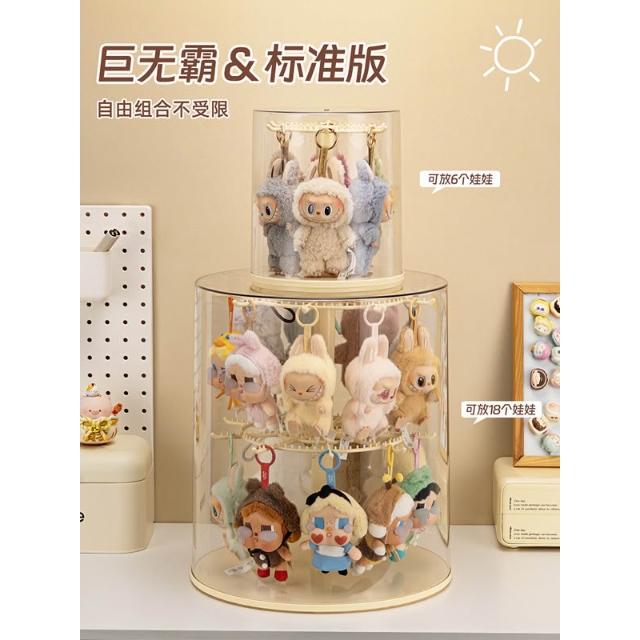 桃甜也精選好物 labubu展示盒透明旋轉拉布布搪膠公仔玩偶娃娃收納盲盒手辦展示架
