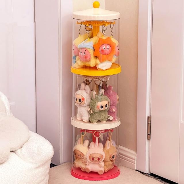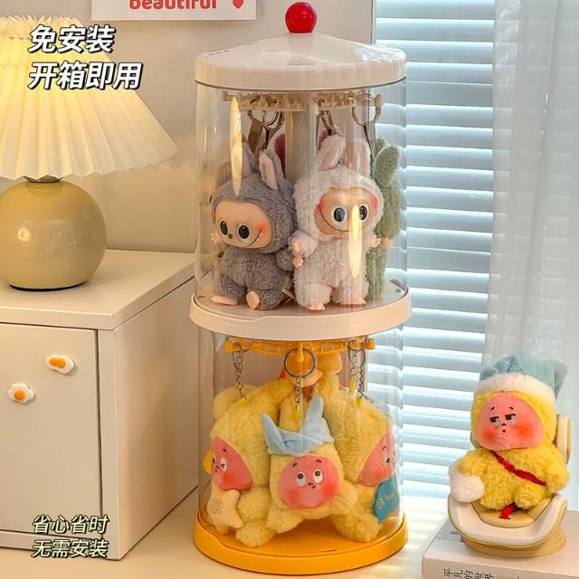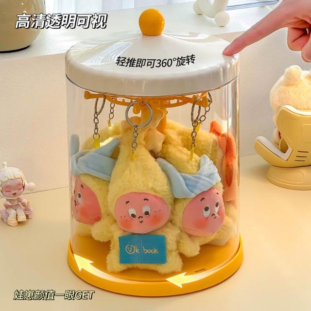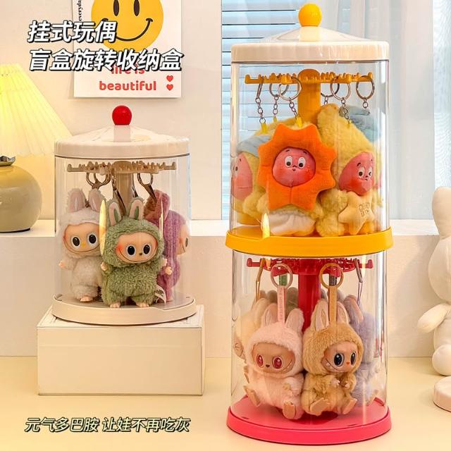 桃甜也精選好物 labubu展示盒可旋轉透明搪膠娃娃毛絨公仔拉布布星星人手辦收納架