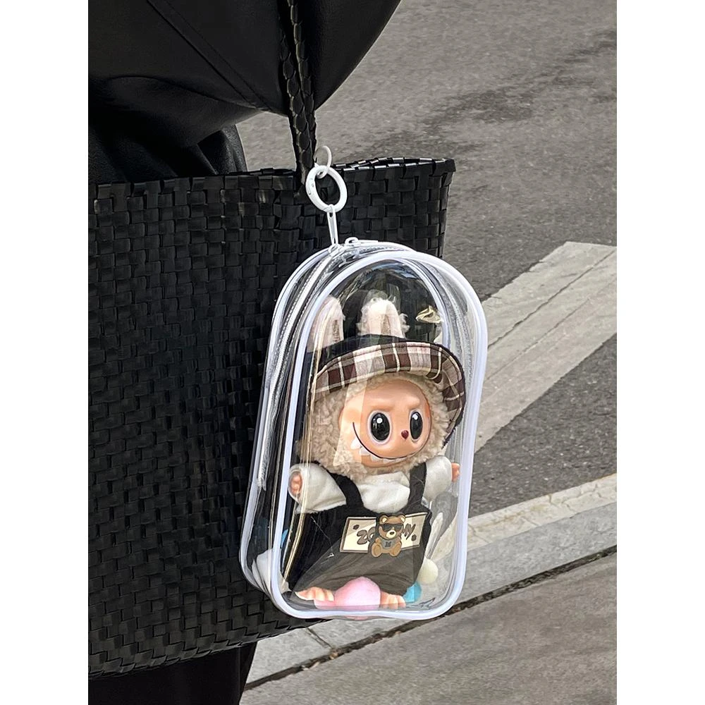 桃甜也精選好物 labubu保護罩外出遛娃痛包掛袋棉花娃娃公仔防塵展示拉布布外出包