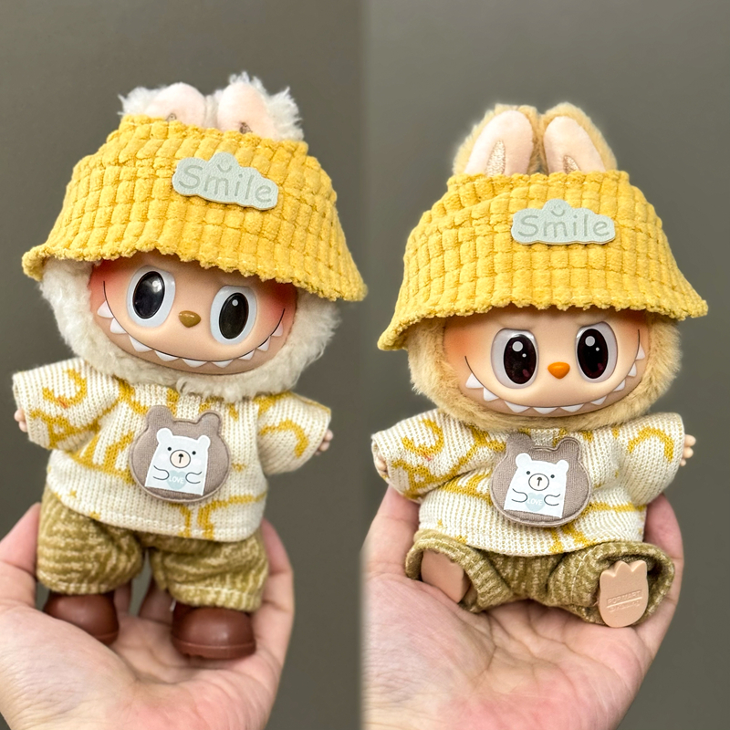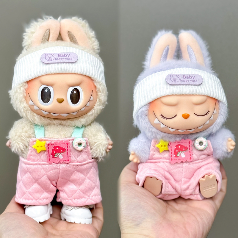 桃甜也精選好物 一二代labubu毛絨公仔搪膠玩偶衣服站立17cm的坐姿拉布布可穿娃衣