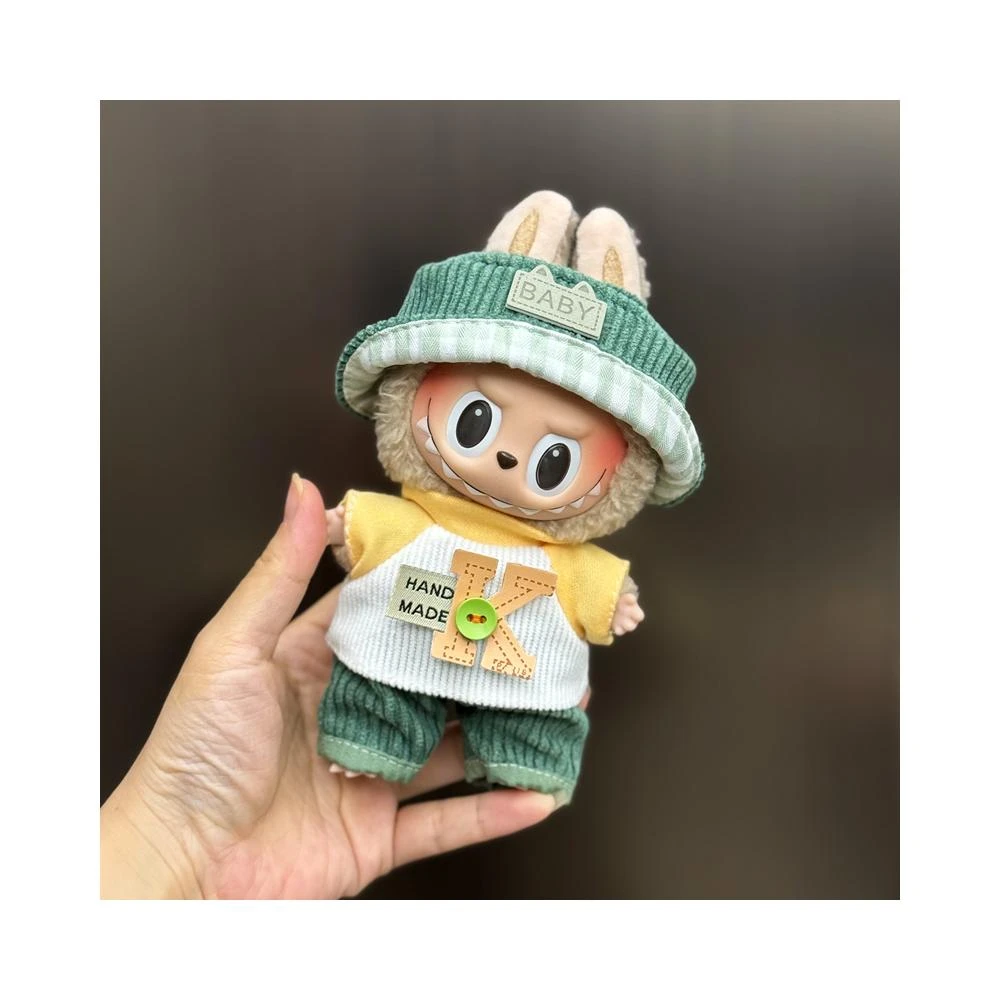 桃甜也精選好物 一二代labubu毛絨公仔搪膠玩偶衣服站立17cm的坐姿拉布布可穿娃衣