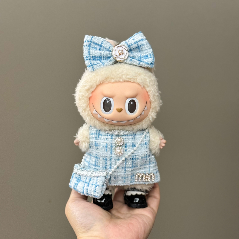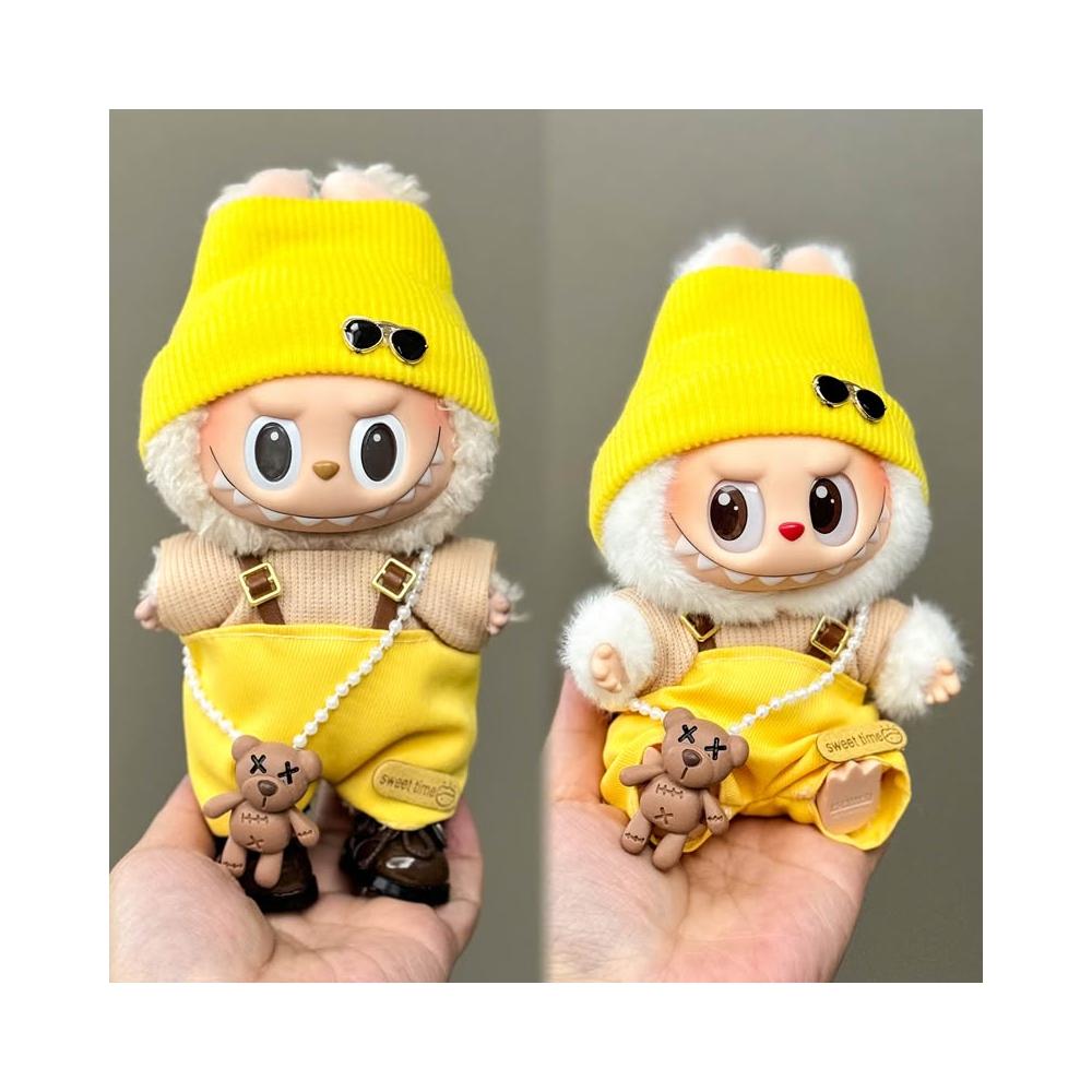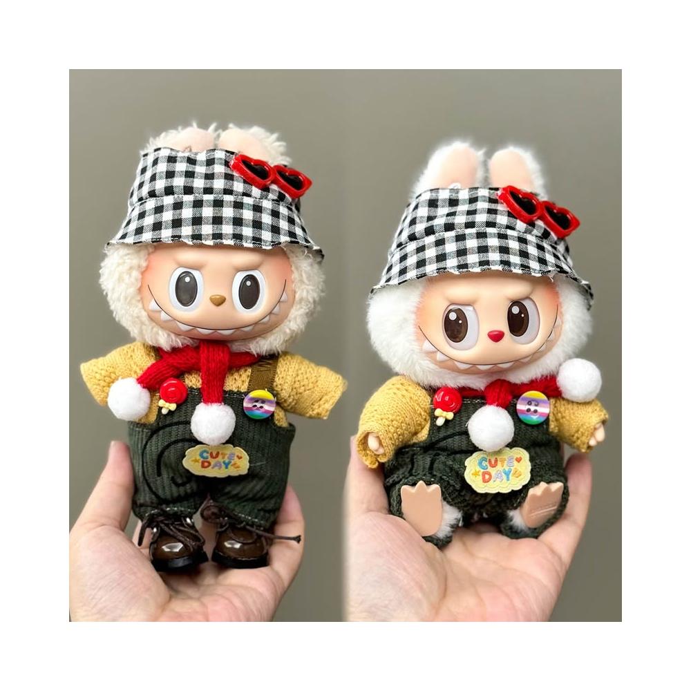 桃甜也精選好物 一二代labubu毛絨公仔搪膠玩偶衣服站立17cm的坐姿拉布布可穿娃衣