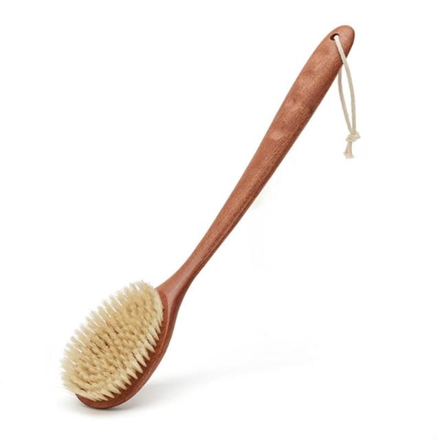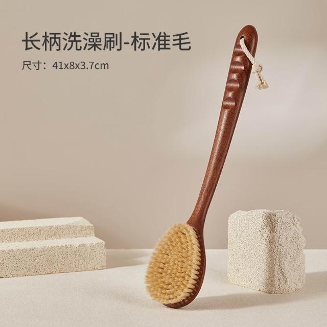 桃甜也精選好物 木質洗澡刷猪鬃毛刷美體搓背長柄身體刷乾刷背軟毛搓澡沐浴刷