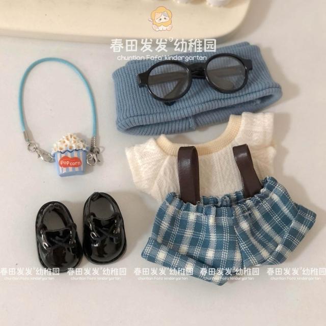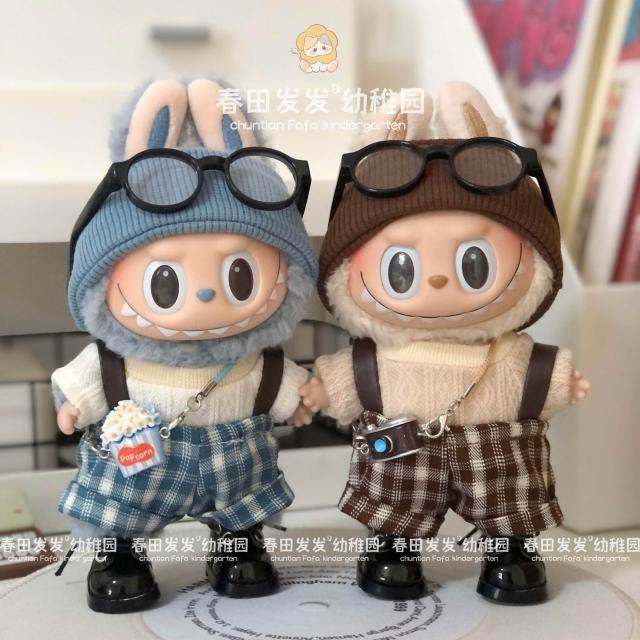 桃甜也精選好物 17cm拉布布娃衣毛絨公仔坐坐派對馬卡龍搪膠衣服套裝labubu