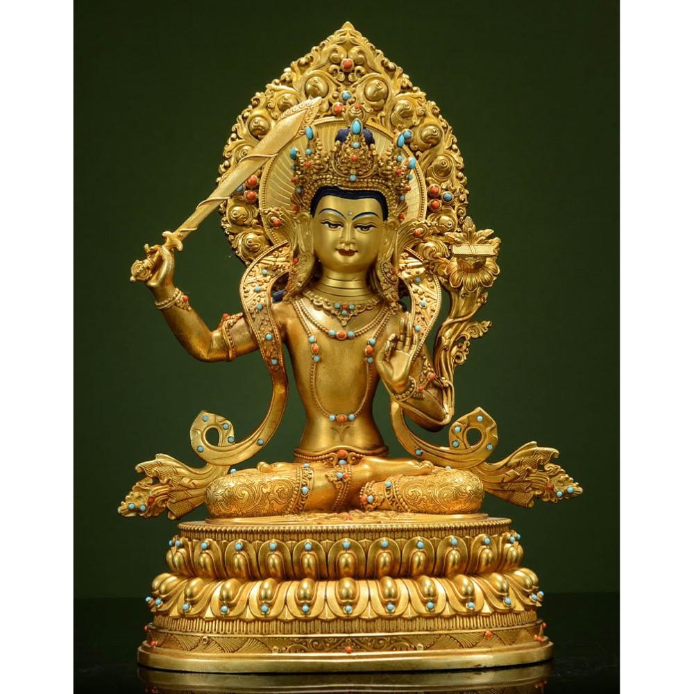 桃甜也精選好物 全鎏金《文殊菩薩》精工銅雕室內家用《文殊師利》銅佛像擺飾