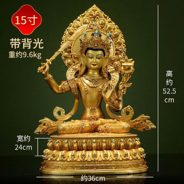 桃甜也精選好物 全鎏金《文殊菩薩》精工銅雕室內家用《文殊師利》銅佛像擺飾