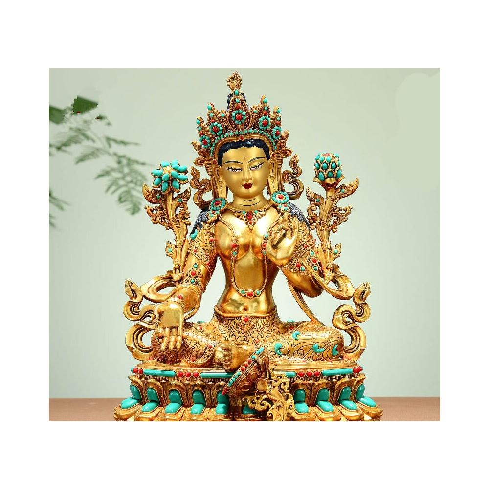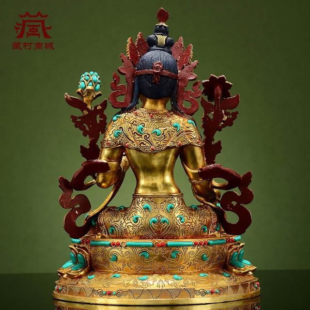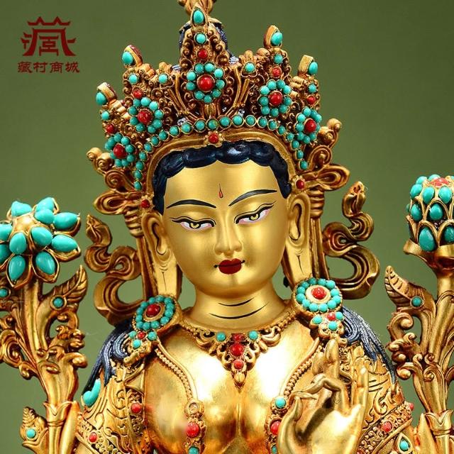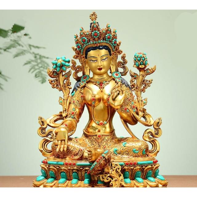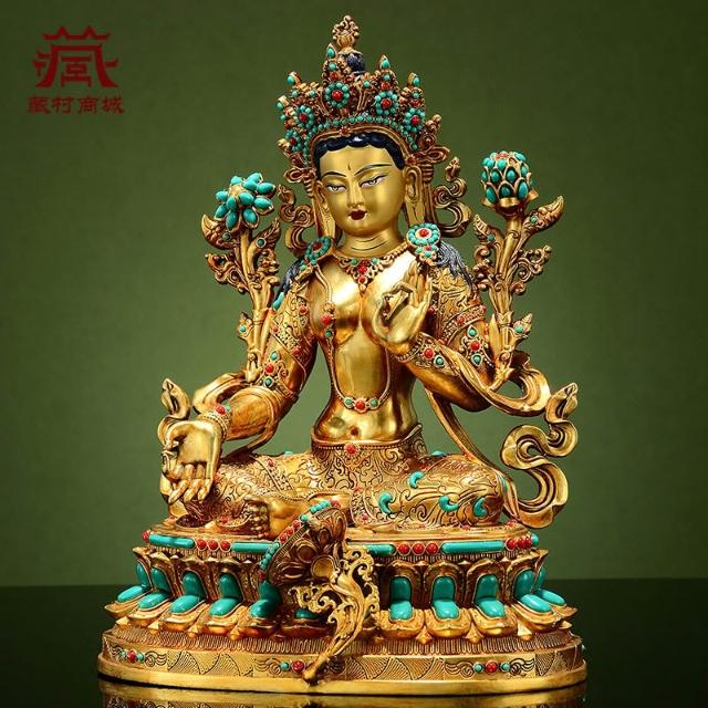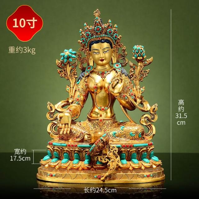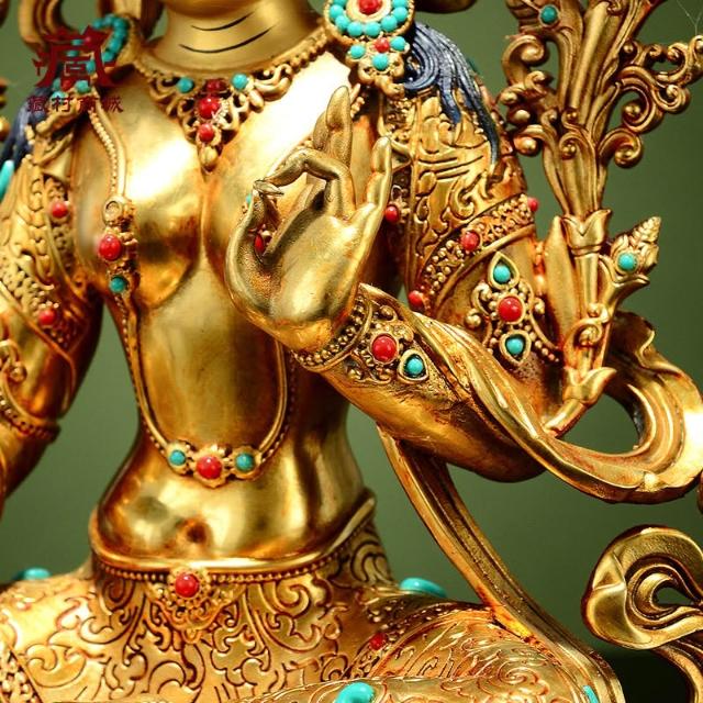 桃甜也精選好物 彩珠鑲嵌《綠度母》室內家用全鎏金《綠多羅觀音》銅佛像擺飾