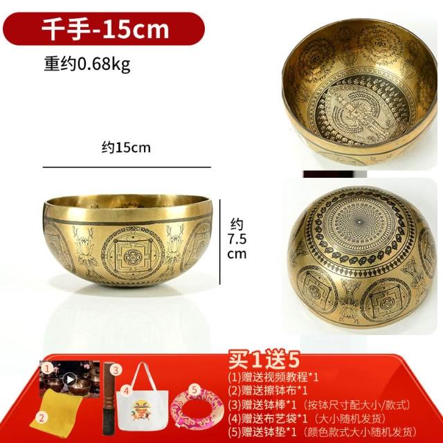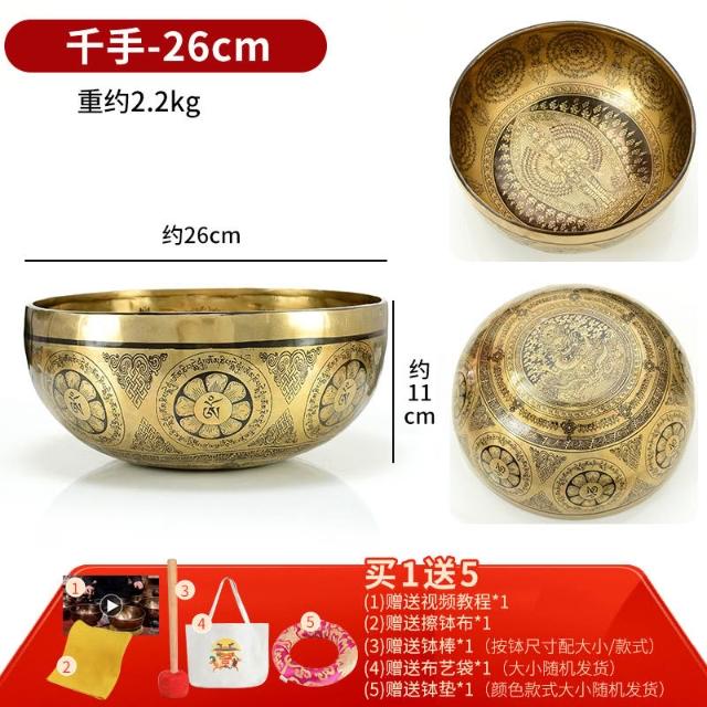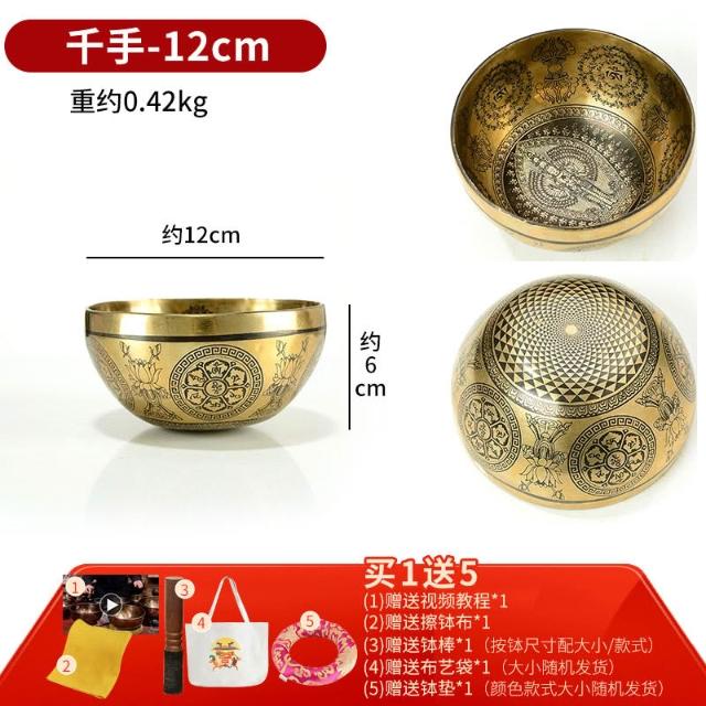 桃甜也精選好物 尼泊爾手工黃財神佛像頌缽千手觀音音缽靜心缽銅磬桌面擺件