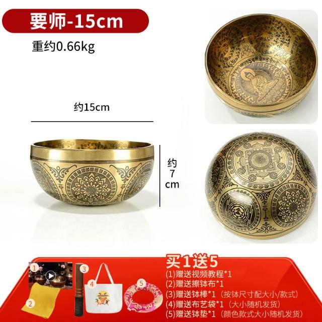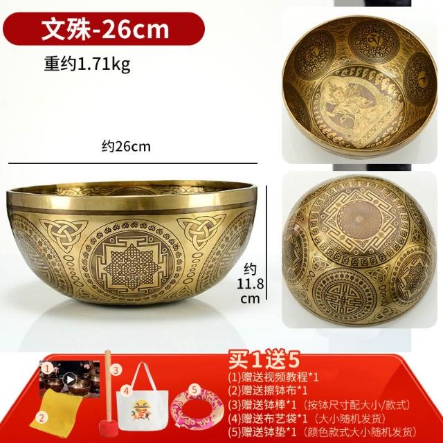 桃甜也精選好物 尼泊爾手工黃財神佛像頌缽千手觀音音缽靜心缽銅磬桌面擺件