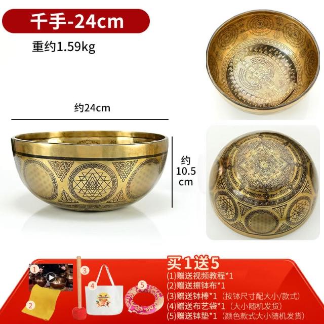 桃甜也精選好物 尼泊爾手工黃財神佛像頌缽千手觀音音缽靜心缽銅磬桌面擺件