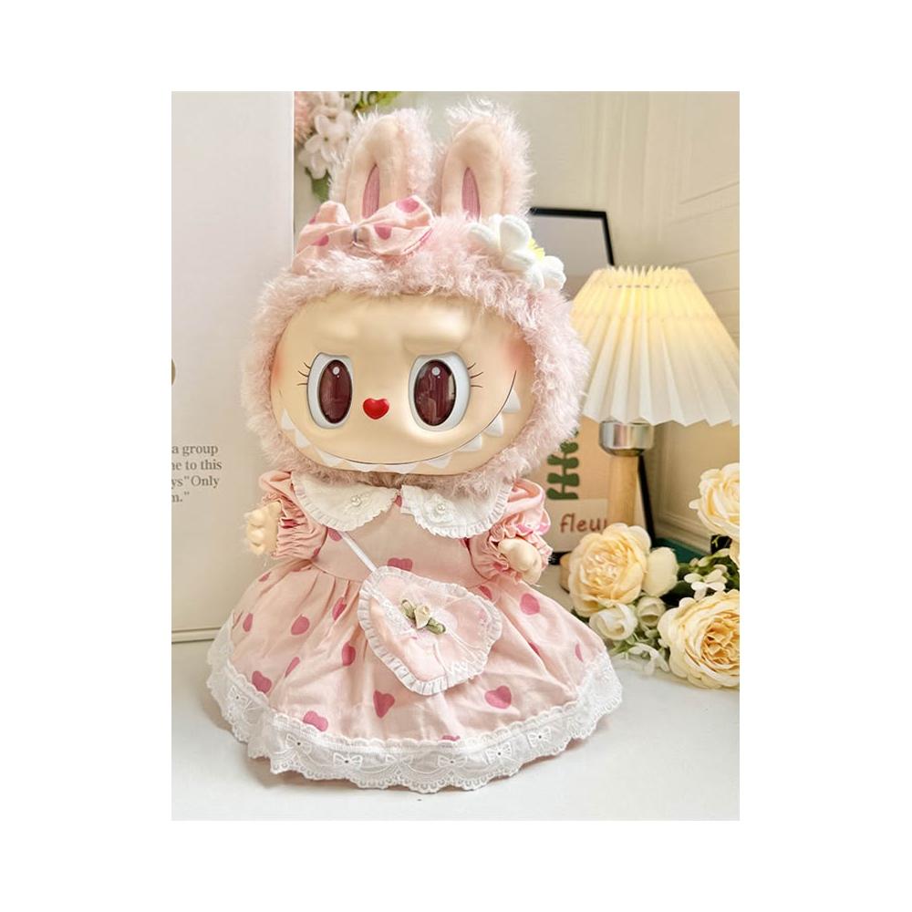 桃甜也精選好物 38cm拉布布搪膠毛絨娃娃衣服Labubu公仔MOKOKO甜心粉愛心挎包裙萌