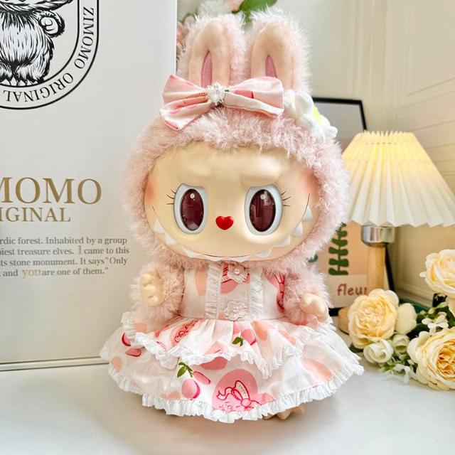 桃甜也精選好物 38cm拉布布搪膠毛絨娃娃衣服Labubu公仔MOKOKO甜心粉愛心挎包裙萌